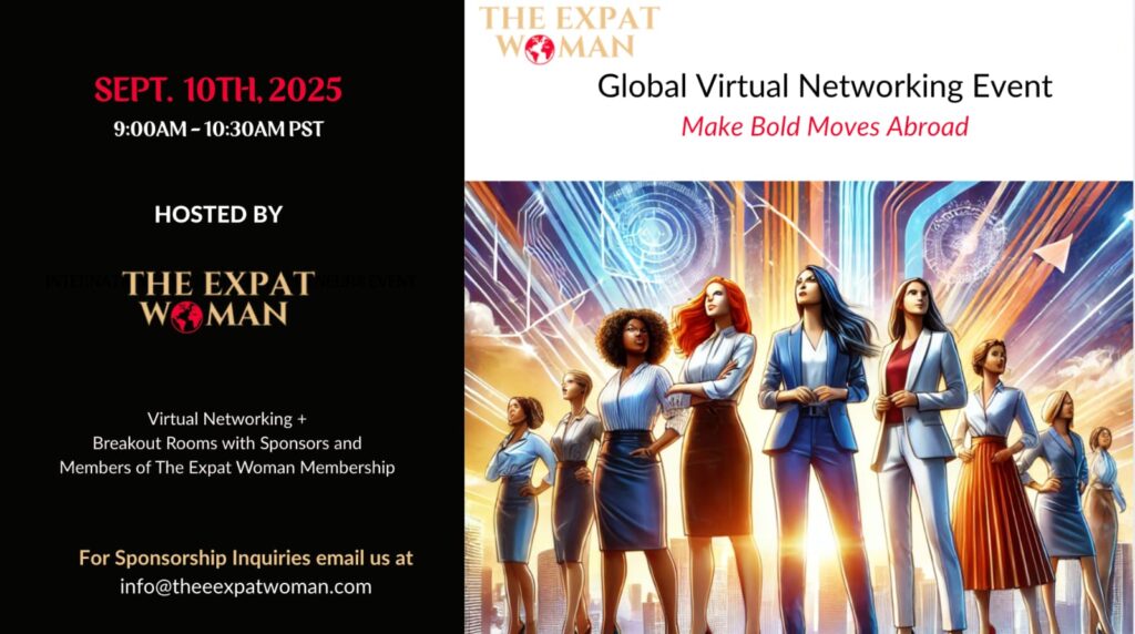 The event will bring together women from diverse backgrounds to connect, share experiences, and support each other. It wlil include virtual networking and breakout rooms on topics focused on “making bold moves abroad” hosted by members of The Expat Woman Membership* and sponsors* of the event