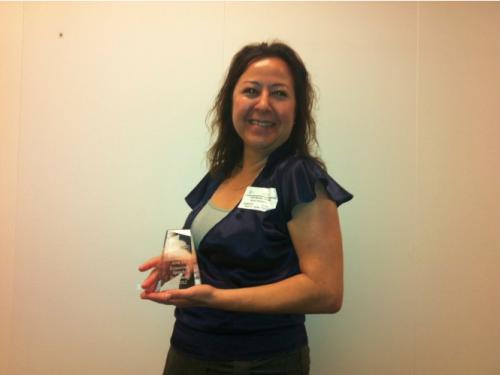 Noemi Gonzalez with a Toastmasters award